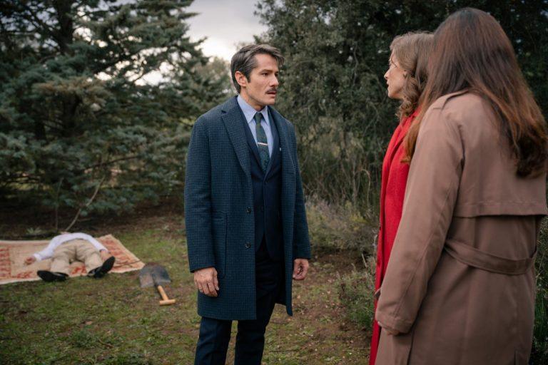 Marta y Fina se preguntan si deben denunciar la muerte de Santiago Damián trata de persuadir a Irene para que no abandone la colonia.